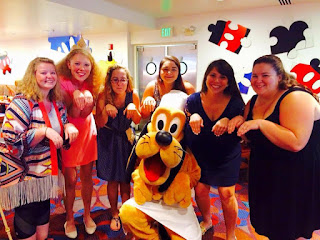 Today me and my roommates had breakfast at Chef Mickeys! I like the breakfast here better than dinner, but we were there really early, like 7:45am. Toooo early for me! We got group shots with all the characters, so it was really cute.